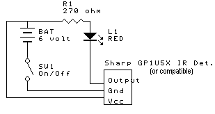 alexg71@, Схема проста ! Две батареи по 1.5 в +фотоприемник+светодиод |