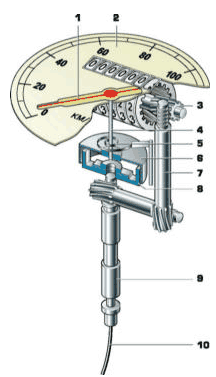 По стрелке спидометра можно контролировать частоту вращения моторчика а значит и время одного его оборота |