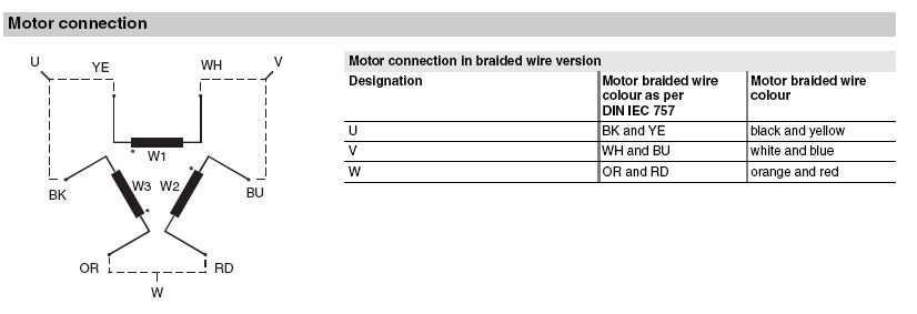 The direction of rotation of the motor shaft can be inverted by swapping over two terminals (e.g. U, V or V, W).