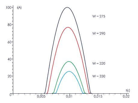 | Цитата: | Из графика на рис. 2 видно, что трансформатор с первичной обмоткой в 275 витков имеет пусковой ток около 100 А. На этом же рисунке можно проследить, как влияет изменение количества витков первичной обмотки на пусковой ток.
