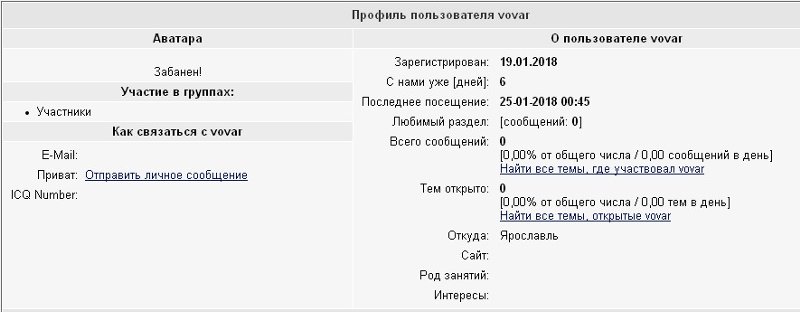 Поэтому получая предложения от якобы постоянных и проверенных участников, не ленитесь заглянуть к ним в профиль. Первое и основное - это дата регистрации и соответственно количество сообщений, которое у них равно 0 т.к. пишут они сразу на почту и в форуме не участвуют.