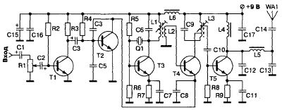 Вот только убей ,не помню,что на выходе.Включение покажет.Кварц на 18 с копейками,что подозрительно. В коллекторном контуре какая гармоника имеет право присутствовать - четная или нечетная? Нифига не помню,блджд.