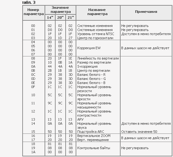 Высветится надпись IF 38.0 или IF 38.9, перемещение по меню кнопками переключения программ, регулировка параметров кнопками регулировки громкости. Для выхода из сервиса нужно нажать кнопку TV или AV, при этом все изменения записываются в EEPROM.