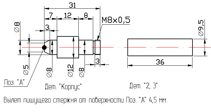 Вот эскизик пера из документации, к вечеру образмерю. Задумка перьев с коротким стержнем шариковой ручкой - говно. Надо что-то типа капиллярки или тонкого фломастера приспосабливать.