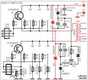Сразу питание под нагрузкой проверить желательно.Делаю похожий аппарат уже после замены примерно всего выше сказанного успел спалить опять.Нашёл обрыв Б-Э Q2P.поставил С3205-родного не нашёл.Реле питается +13В.Менял для профилактики LM324.Сейчас отрезал силовую часть и включал через лампочку 100Вт.Включается вроде нормально по осциллограммам я не спец но вроде то.При выключении цикает 10-15сек.Может кто знает в чём проблема? |
