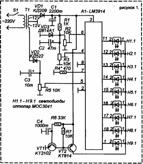 Меня когда-то схемка на LM3914 в "Радиоконструкторе" заинтересовала. Тиристоры. Никаких реле.