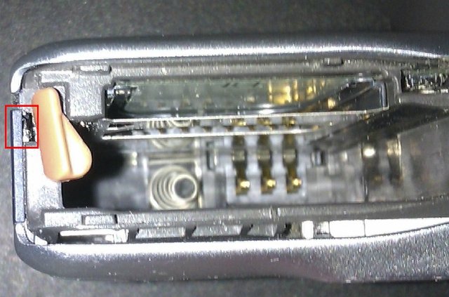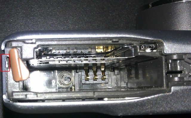 При наклоне передней части в сломанный и выдвинутый объектив упирается, поэтому не открывается. Более того, без опыта есть риск сломать защёлку при очень большом отгибании корпуса (сделаны из мягкого материала, как и корпус, в отличие, например, ixus 750, ixus 950). Пластиковый "медиатор", зачастую толще нужного. Или подточить его или тупым ножом аккуратно (краска корпуса скалывается на раз). Короче, нужен опыт. |