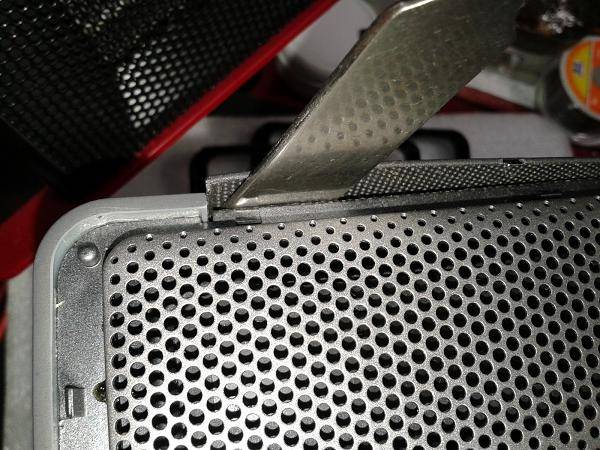 может как в х бокс 360? защелки? попробуй в дырки решетки каким шабером пошарить... |