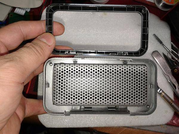 Сеточная крышка не поддается-начинает деформироваться при усилии -тяну руками ее в сторону гориз,возможно есть гдето места куда вставить шпатель и опр. усилием отодвинуть крышку эту . Боковые прямоуг. вставки темные-металлические толстые-задвинуты -приклеены вглубь короба,решетки боковые тянуть может? Можно насилу драть,но товарный вид боюсь испорчу случайно,-не хочется.