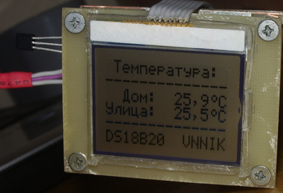 Держи мой самый первый термометр. Проект не мой, так подправил кой чего... |