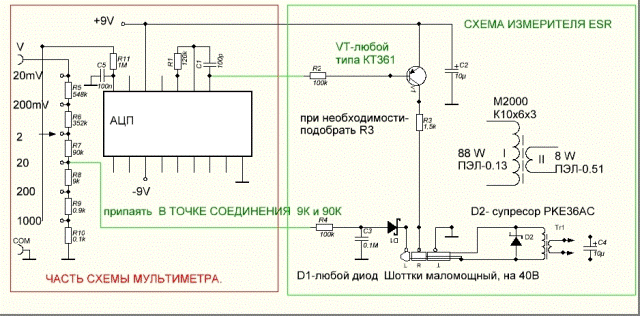 Ну и ещё измеритель ESR ( от 0 до 15 ОМ ) ,всего из 10 деталей ,на базе мультиметра серии DT830 ,M890 и им подобных.