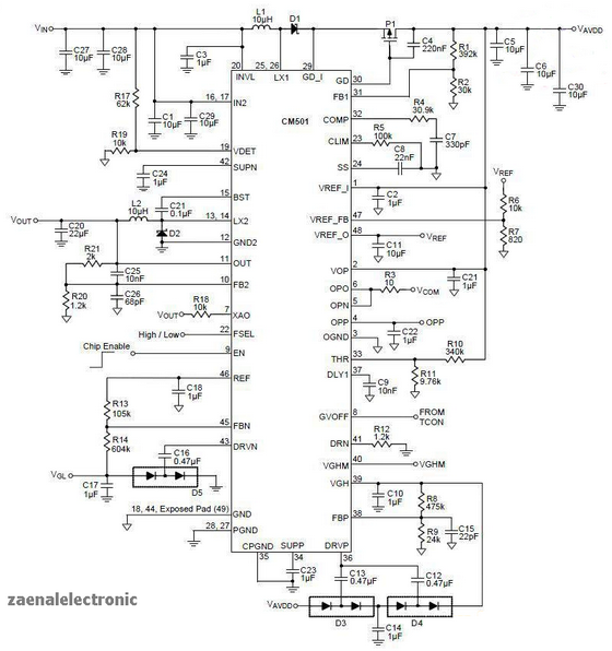 А неисправность - CM501 стартует, VOUT (3.3B) присутствует, а вот VAVDD чоппер (как и VGH) заводится буквально на 10 милисекунд, и потом затыкается.