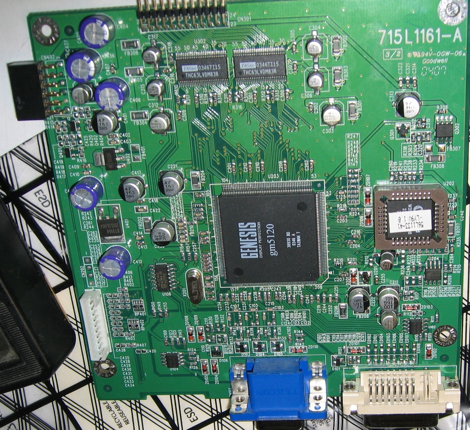 такое впечатление, что чип gm5120 зависает, и подпитывается от DVI. Пока напряжение не снимешь (например выключив компьютер или отключив кабель от видеокарты) и не выключишь/включишь монитор - зависание не проходит.