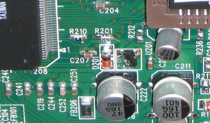 Нашёл отсутствие данной микросхемы на моей плате, но установленные элементы R201, D201, C245. [url](http://tavsar.com/JPG/iiyama/IMG_4234.JPG)[/url]
