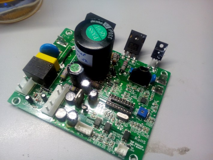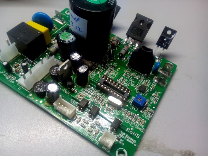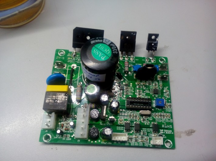 Доброго времени суток. Поступила в ремонт плата драйвера двигателем постоянного тока беговой дорожки InterFit KL 1316A Grace.По словам клиента, плату протерли мокрой тряпкой, оно стрельнуло и прогас даже экран. При проверке оказалось что пробиты линейные преобразователи на 15 и 5 вольт, так же мертв кварцевый резонатор на 10Mhz. После восстановления последних, на питании МК наблюдались сплошные пульсации. Заменил конденсаторы по питанию, все напряжения пришли в норму, но... как последствие, МК оказался пуст. Попробовал прошить в него что-то и прочесть, а он снова пуст. МК так же умер. Может у кого-то есть подобная дорожка на ремонте или в пользвании, прошу помочь с ремонтом, а именно, слить дамп вашего МК. Если нужно, заплачу.