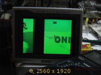 Картинка вроде как синхронизации по строкам нет. Это вот зелёное - типа экранное заставки или номера канала, при жамкании кнопок или подаче на AV - "сюжет" на экране меняется.