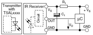 SOLON6, так отцепи выход фотоприёмника и глянь напругу на нём. Должно быть чуть ниже его основного питания, а при приёме сигнала с пульта немного подсаживаться. Кстати кондёр ставят обычно после резистора в сторону процессора, его выкусить можно. |