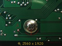 При кантовании на "рабочий бок" трансформатор расшатывает стоечки и головка крепежного винта оказывается ближе всего к цепи на выбитый порт mcu.